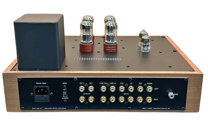 The power supplies are regulated solid state DC, powered by a Lundahl transformer custom made for Erhard Audio.