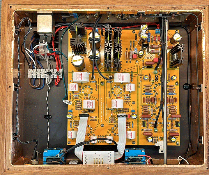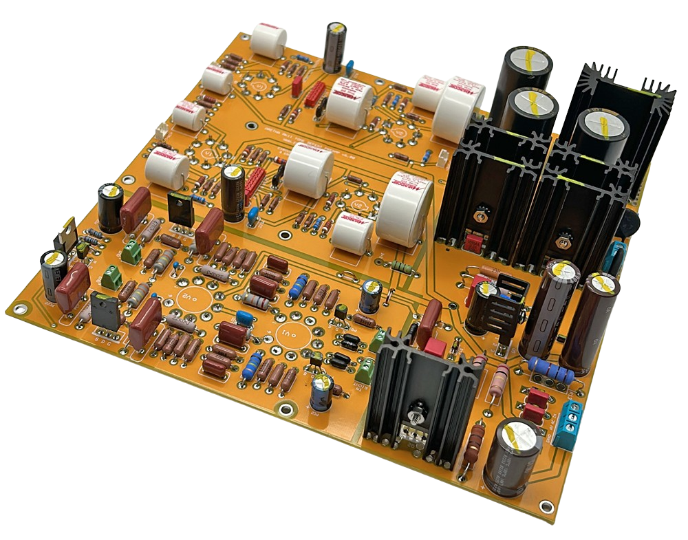 Coupling capacitors are Mundorf MCap EVO's, signal path resistors are Vishay and TE Connectivity high precision film types.